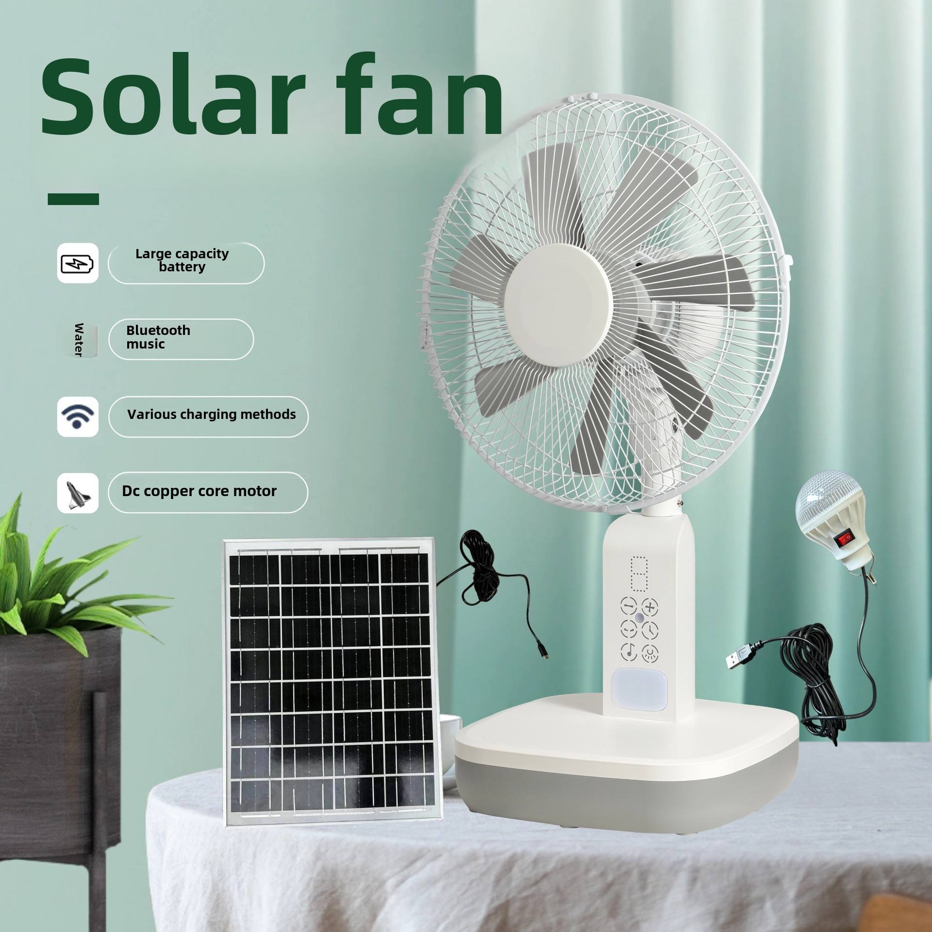 12-Inch Solar Table Fan - USB Rechargeable, Large Battery for Indoor/Outdoor